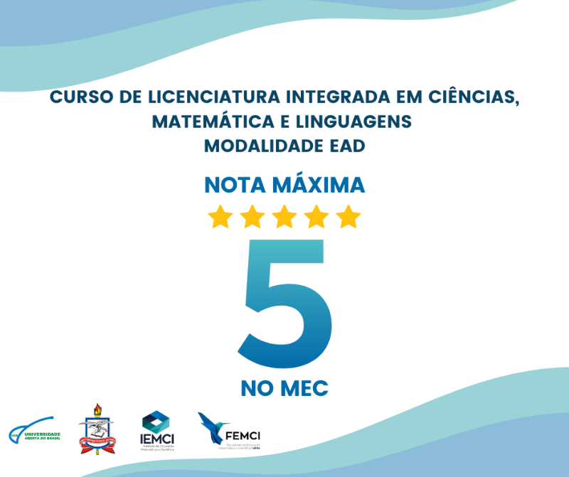 O curso de Licenciatura Integrada em Ciências, Matemática e Linguagens, ofertado na modalidade a distância (EAD) pela Universidade Federal do Pará (UFPA), conquistou a nota máxima (5) na avaliação do Ministério da Educação (MEC). A pontuação representa excelência em qualidade acadêmica e pedagógica, reafirmando o compromisso da UFPA com a formação superior de qualidade.